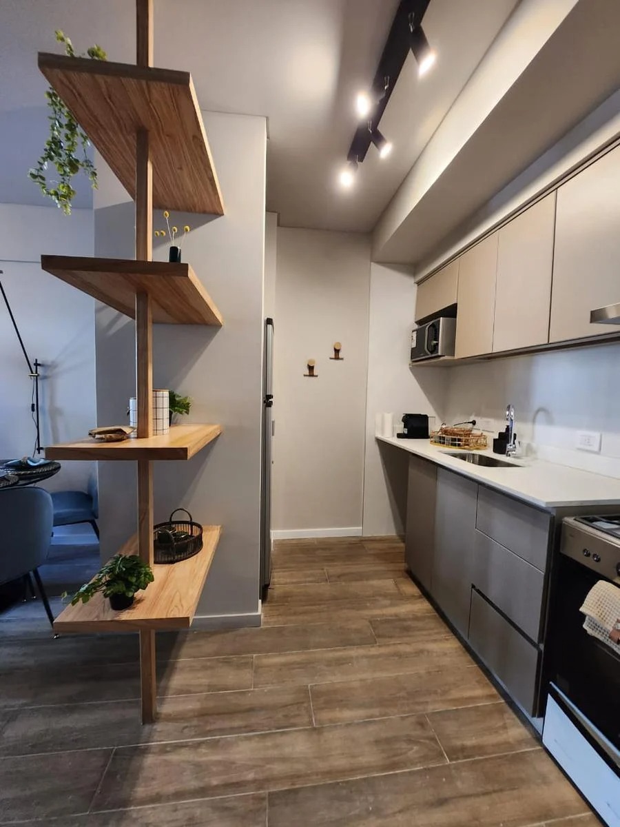 Departamento de 2 ambientes en venta a estrenar con detalles de categoria, y con una ubicación estratégica, amplio dormitorio , la unidad se entrega con aire acondicionado split en todos los ambientes, caldera individual y calefacción por radiadores . Pisos de porcelanato simil madera y placares con interiores forrados. Aberturas importadas con doble cámara de aire. Cocina a gas y campana instalada, muebles de cocina, bajomesada y alacena . Mesada en Silestone.