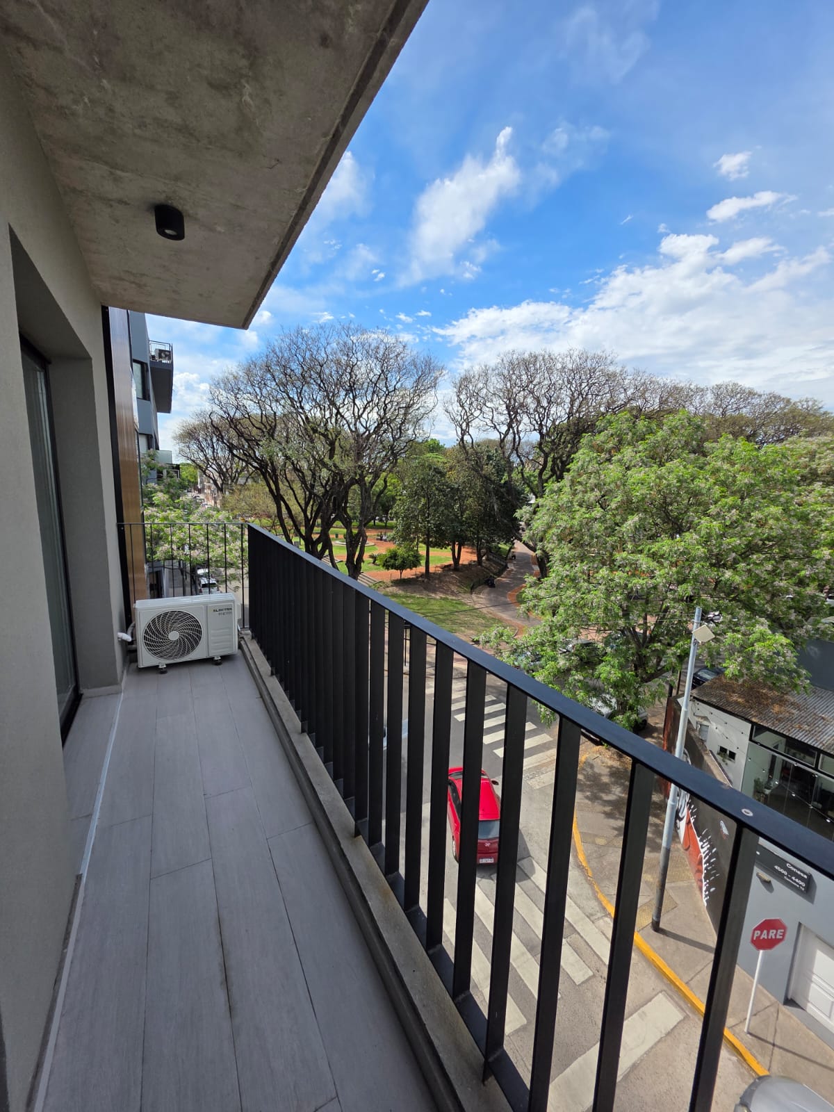• Balcón: Amplio balcón con baranda de vidrio, ideal para el esparcimiento, con vista directa a la plaza.