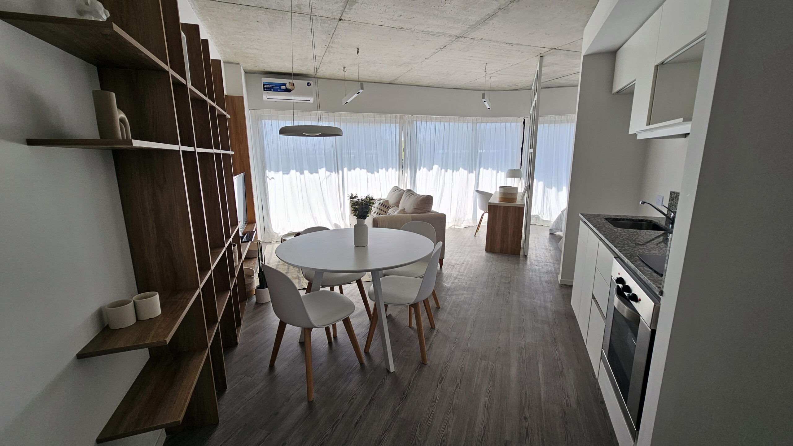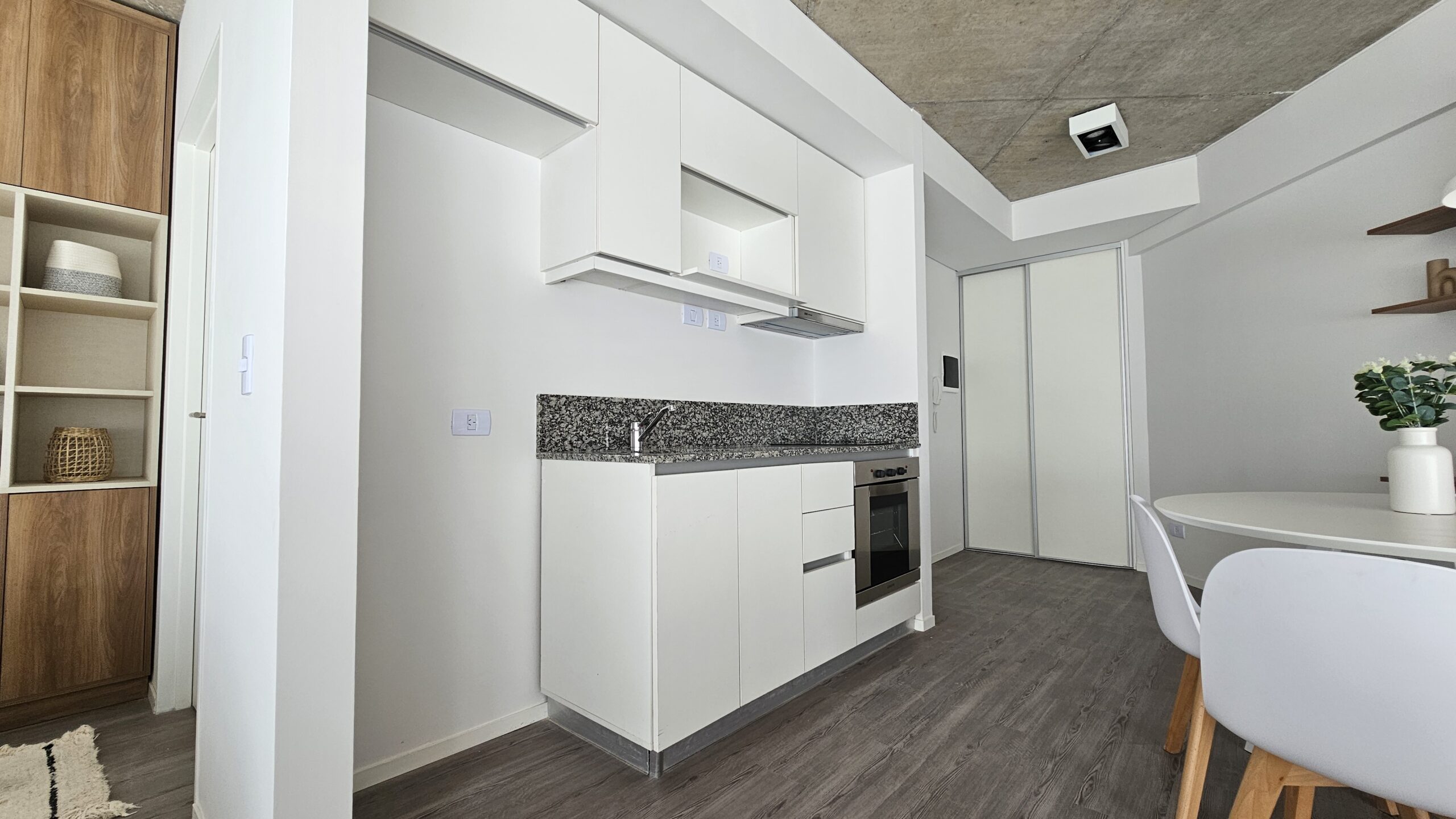Equipamiento Superior: Cocina integrada con mesadas de piedra natural, anafe eléctrico y mobiliario de diseño minimalista.