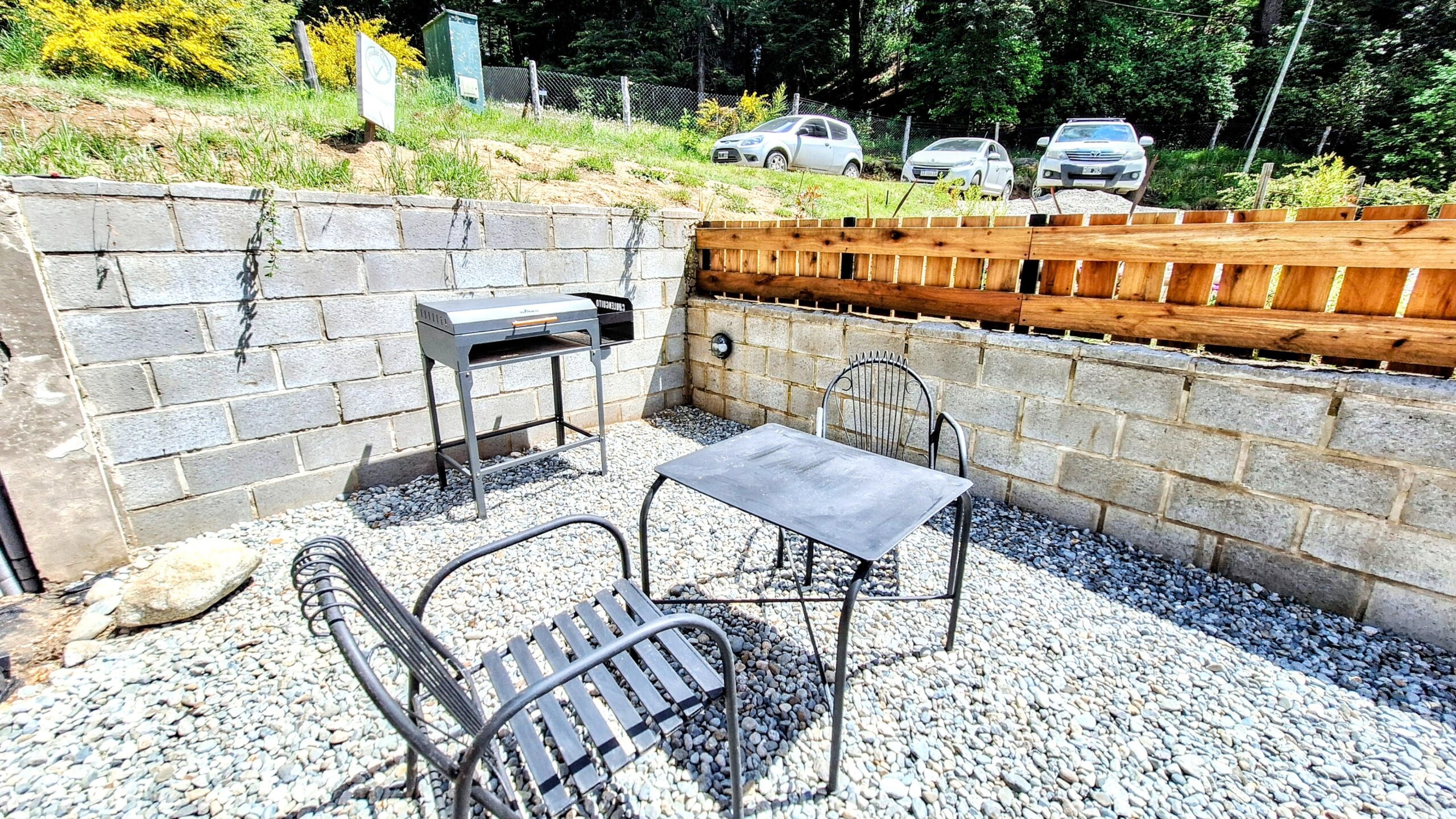 En su exterior cuenta con un espacio de parrilla para pasar las noches, con mesa y sillas Se llega en auto o caminando ya que estamos cerca de Av Bustillo ( calle principal asfaltada que conecta toda la ciudad).