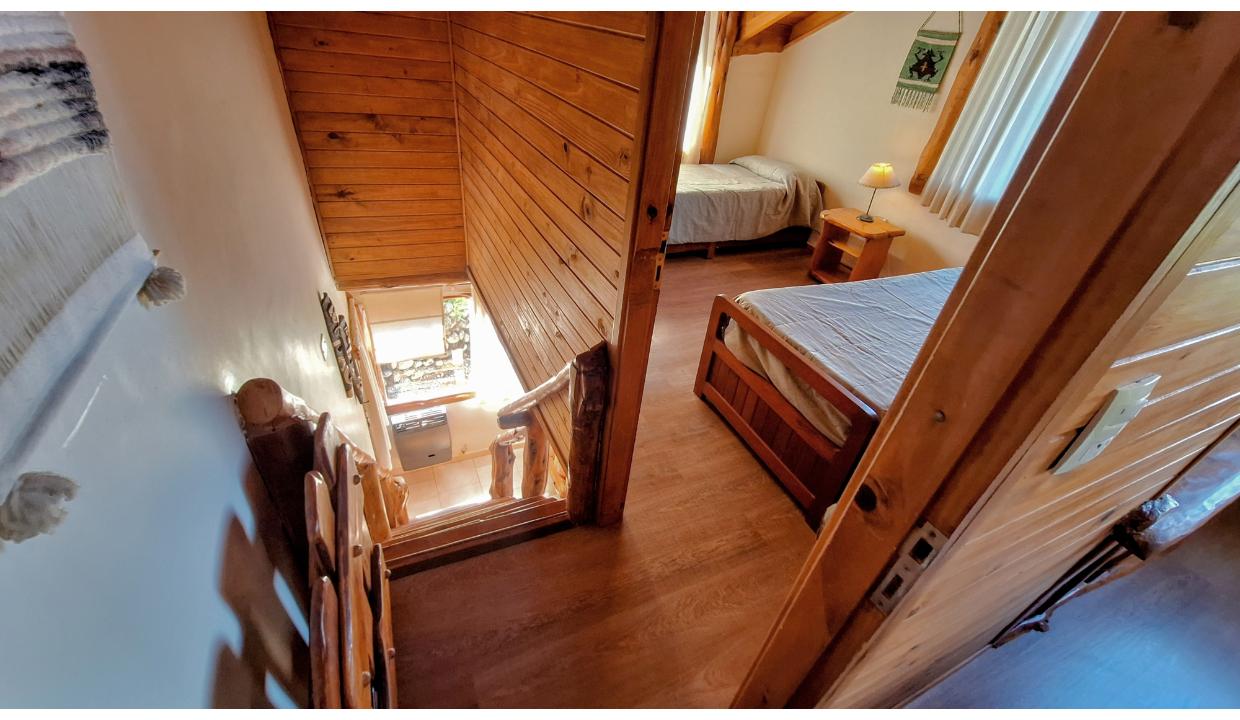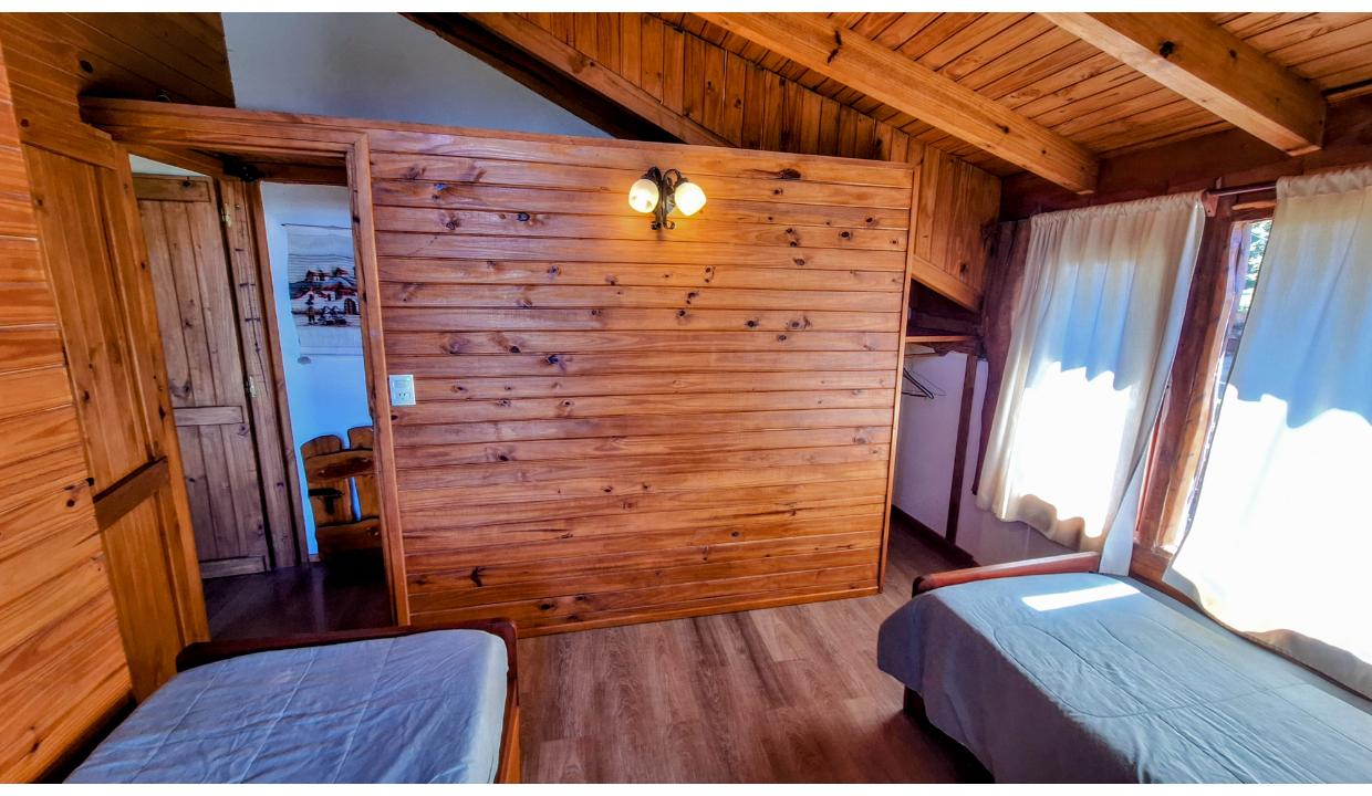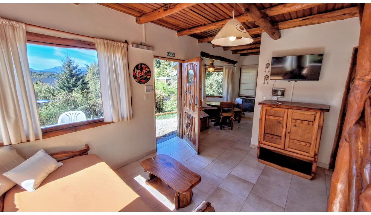 Dos cabañas ubicadas en zona muy tranquila y silenciosa, rodeada de bosque en lugar turísticamente emblemático, a pasos de Puerto Pañuelo de donde parten los Catamaranes para Isla Victoria y muy cerca del Hotel LLao LLao.