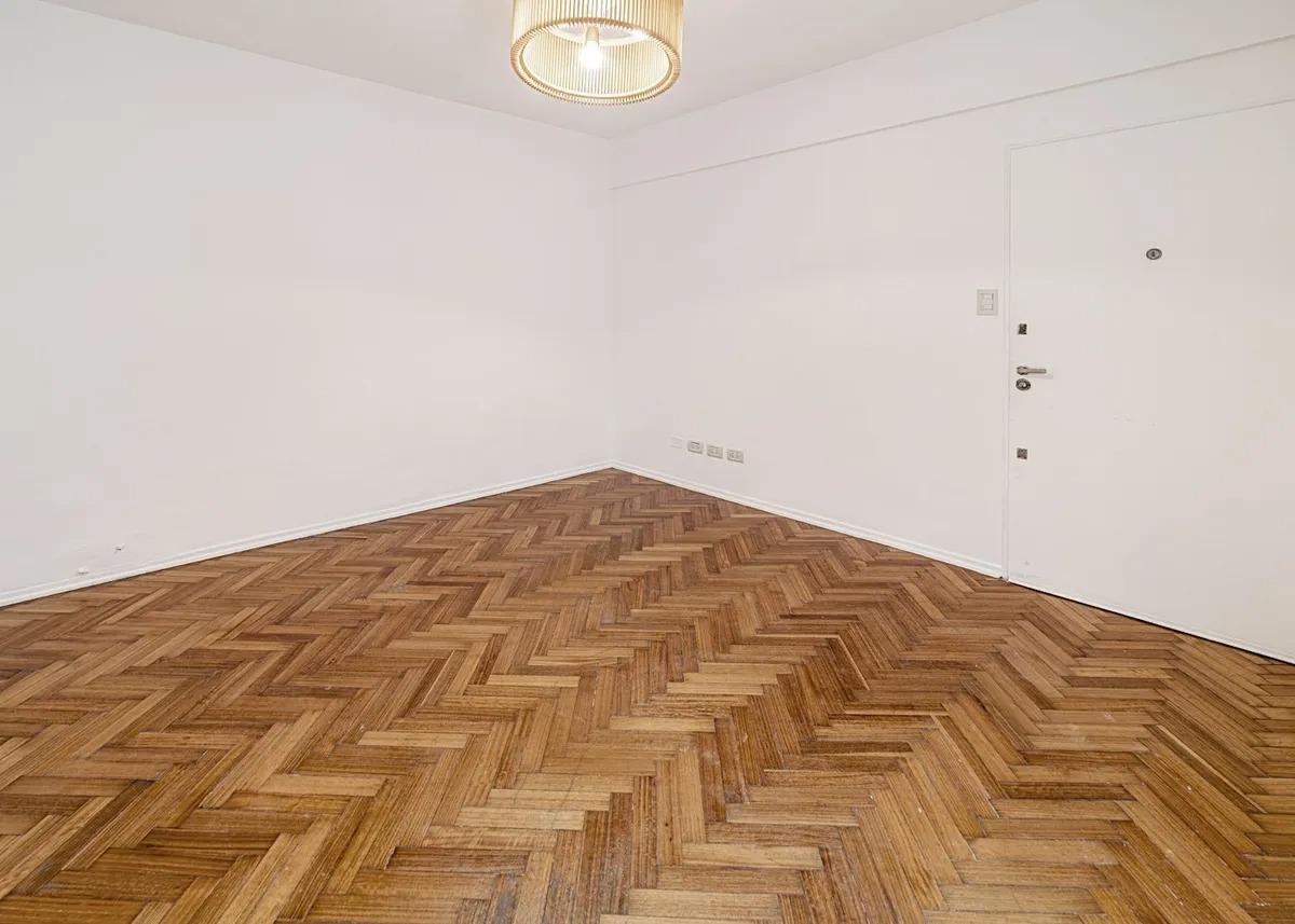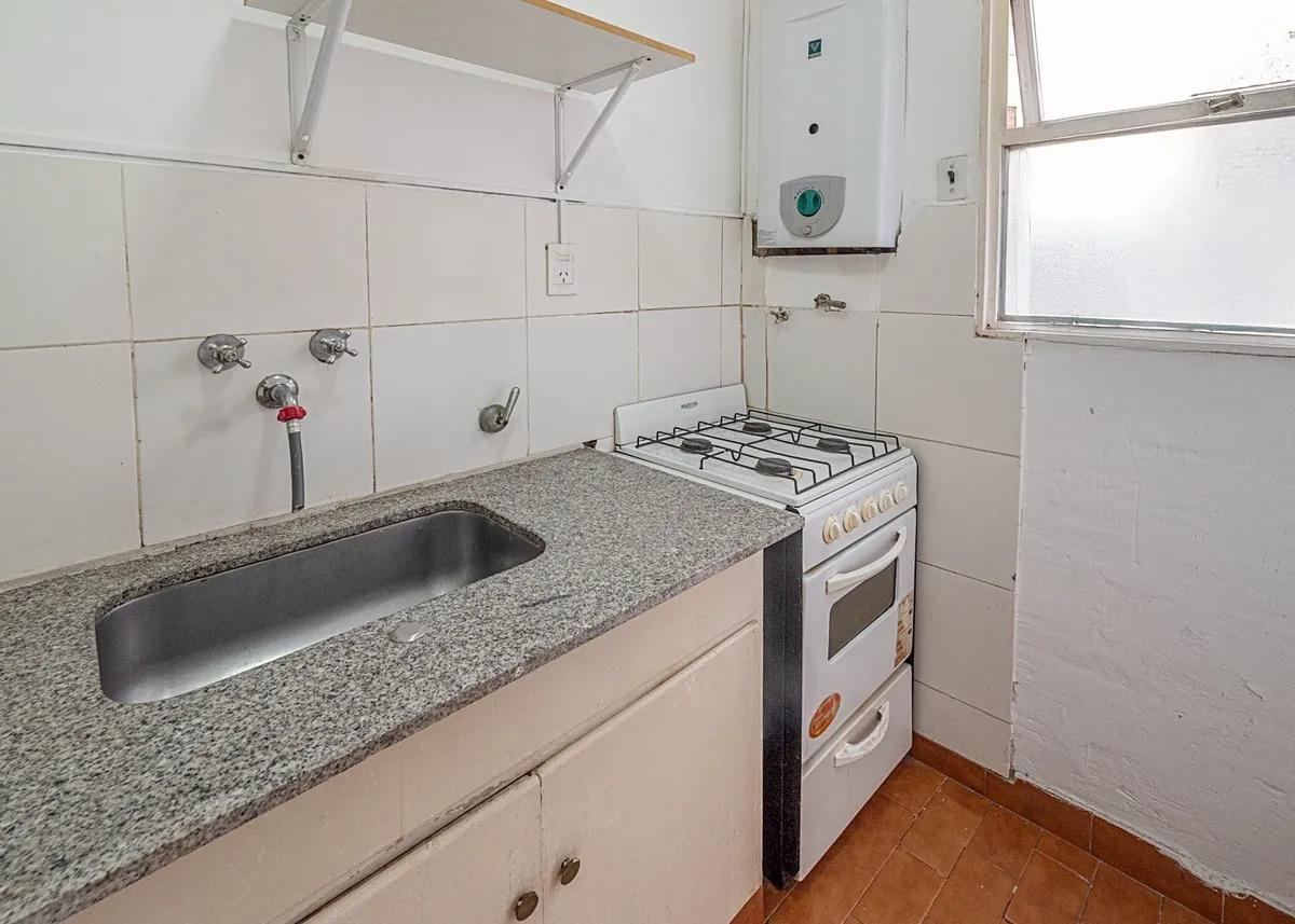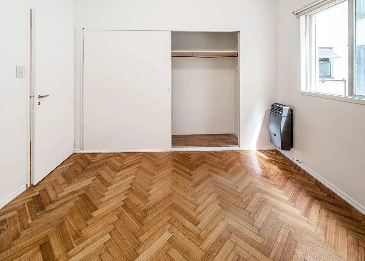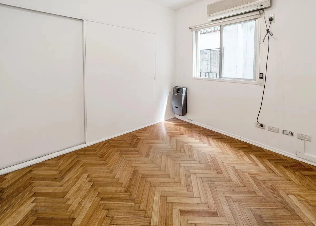 La cocina a gas, equipada con muebles altos y bajo mesada, aprovecha al máximo cada rincón, ofreciendo practicidad y comodidad. El living comedor, con vista a un silencioso pulmón de manzana, invita a disfrutar de un ambiente cálido y sereno, ideal para relajarse. Los pisos de parqué originales aportan carácter y un toque clásico que realza su estilo.