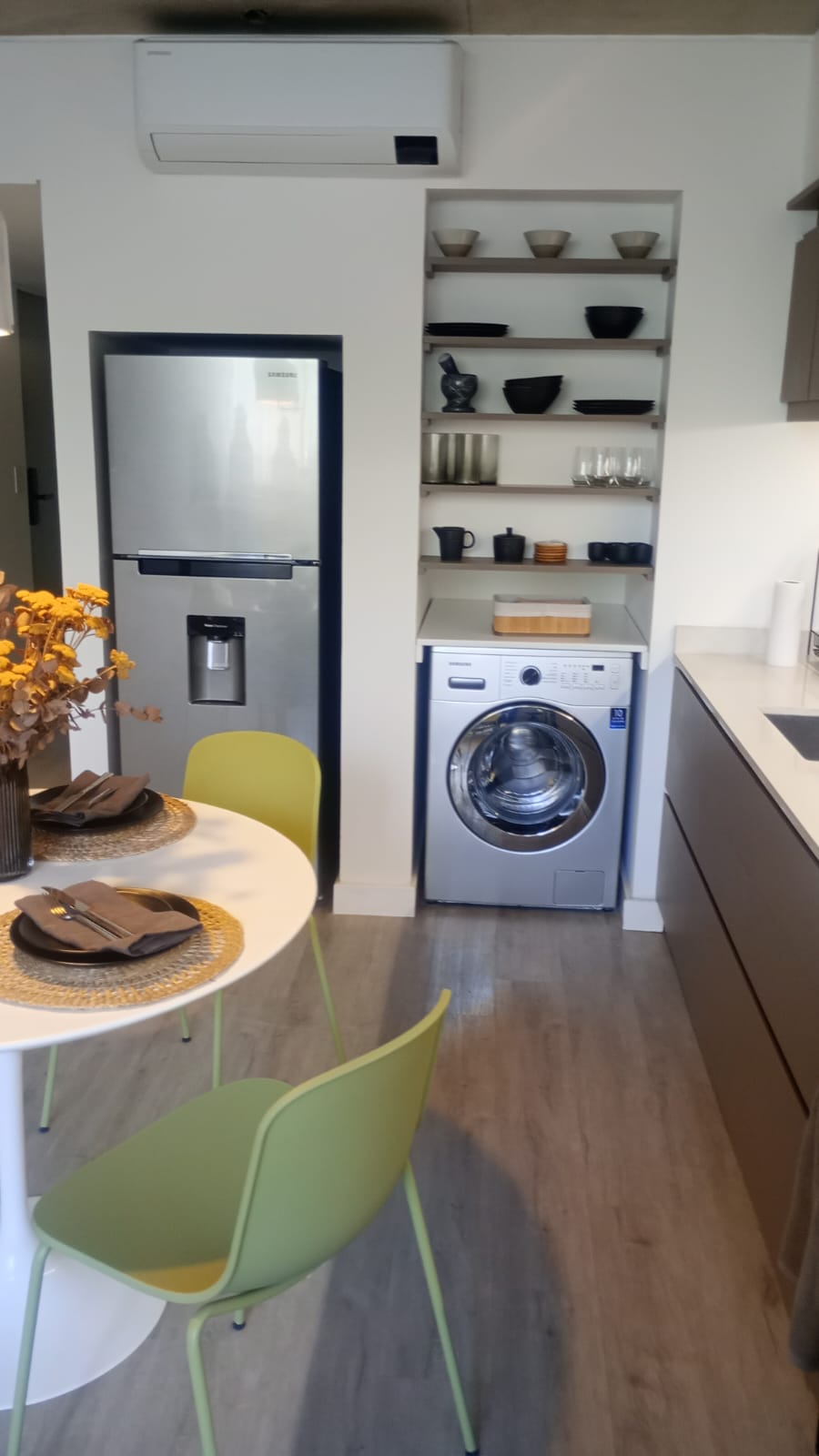 • Planta Social: Un living-comedor inundado de luz natural que conecta con la cocina integrada a través de una elegante barra desayunadora. El espacio ideal para recibir amigos, con salida directa al balcón y un cómodo toilette de recepción.