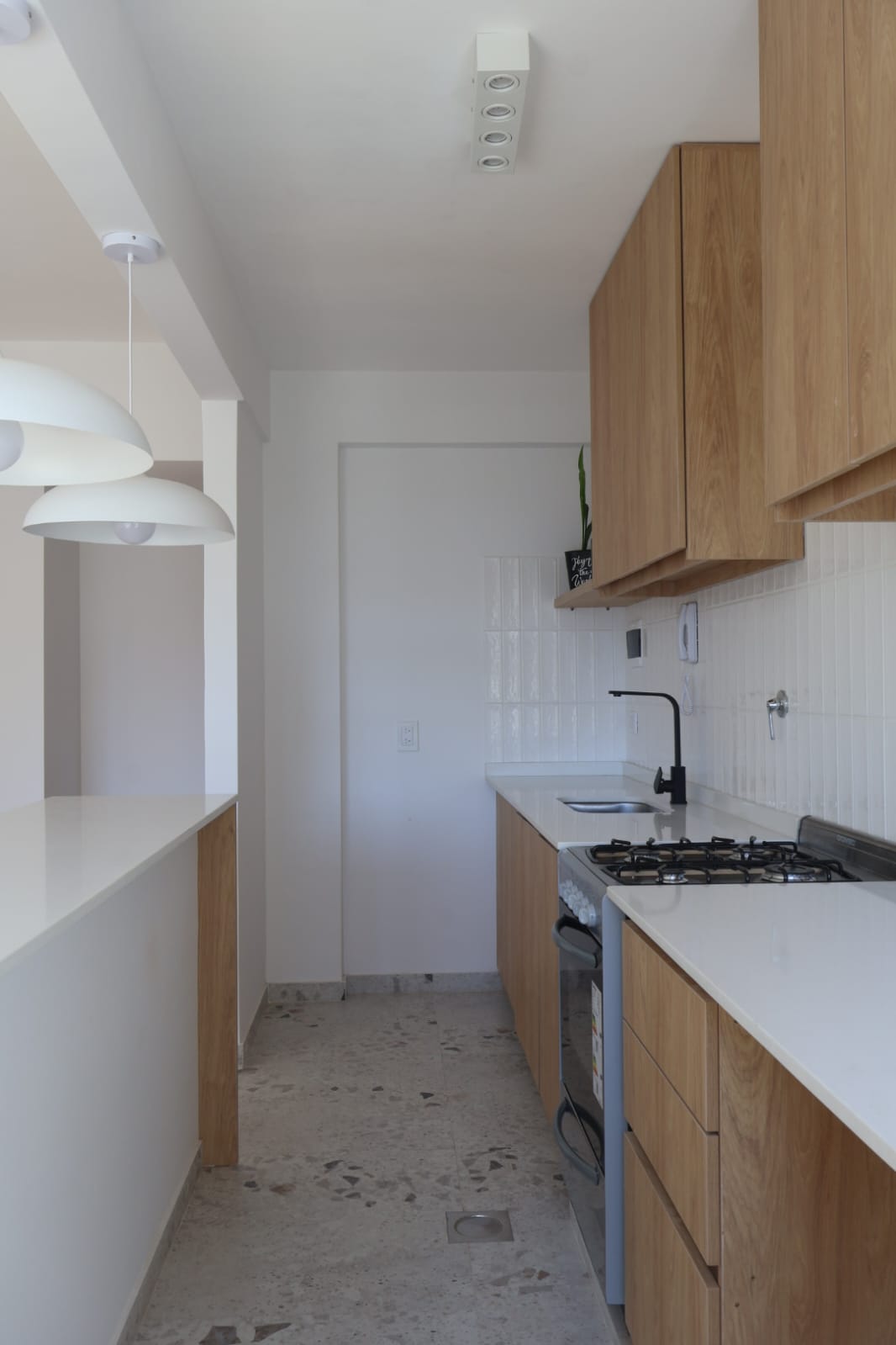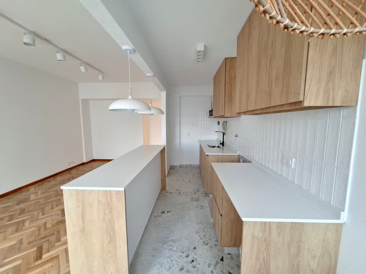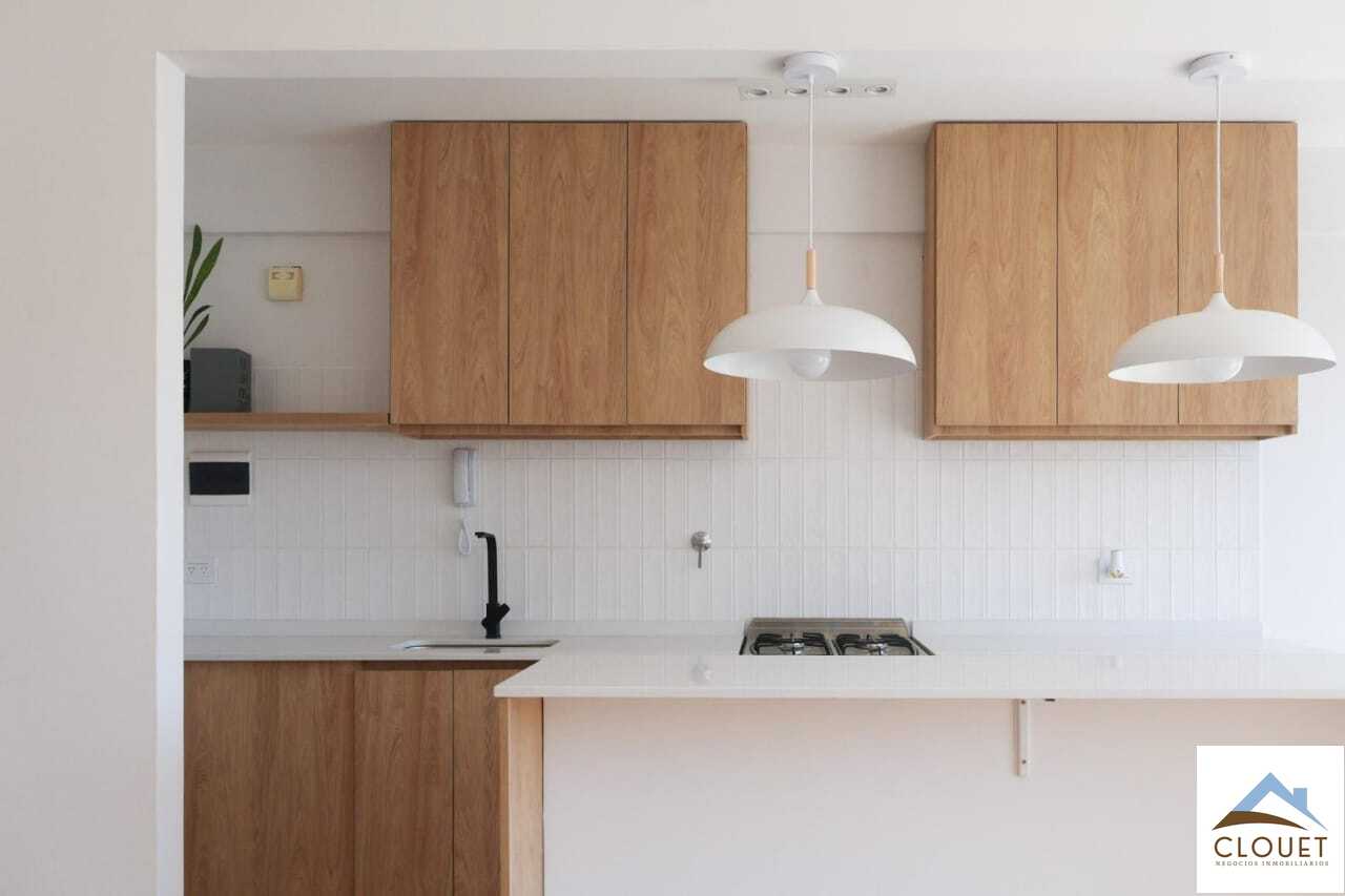 -Cocina de Diseño: Integrada al living, equipada con una imponente barra de 2 metros en Purastone blanco, espacio para mesa desayunadora y conexión para lavarropas. Cocina a gas.